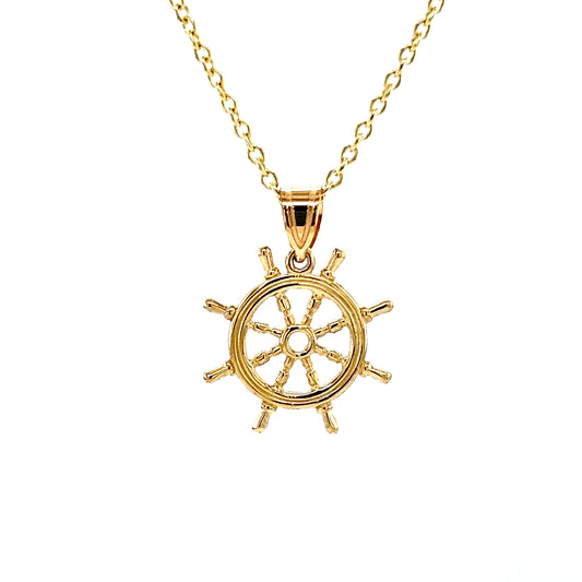 Ship Wheel Pendant with 3D Details in 14K Yellow Gold