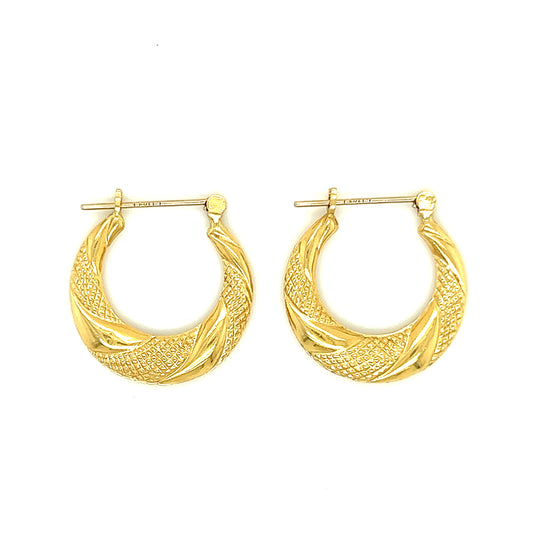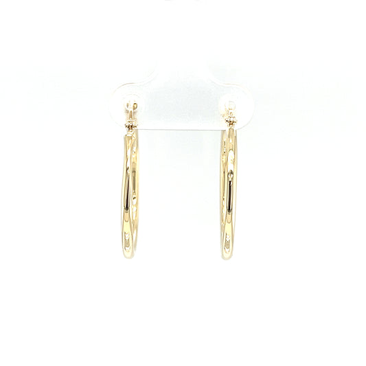Hoop 20mm Earrings with Twisted Textured Pattern in 14K Yellow Gold