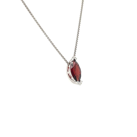 Marquise Garnet Slide Pendant with Six Diamonds in 14K White Gold