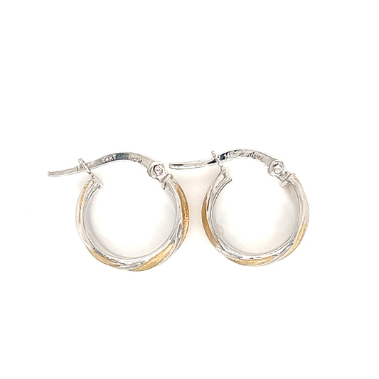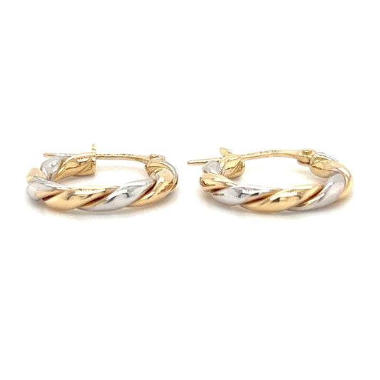 Twisted Hoop 15mm Earrings in 14K White and Yellow Gold
