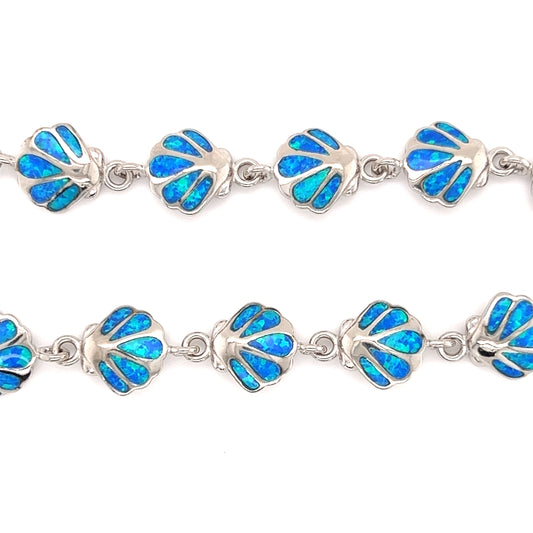 Seashell Bracelet with Blue Opal Inlay in Sterling Silver