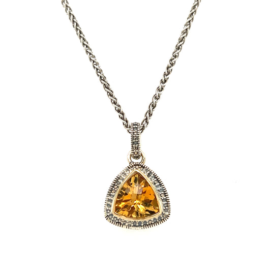 Trillion Citrine Antiqued Necklace with 14K Yellow Gold Accent in Sterling Silver