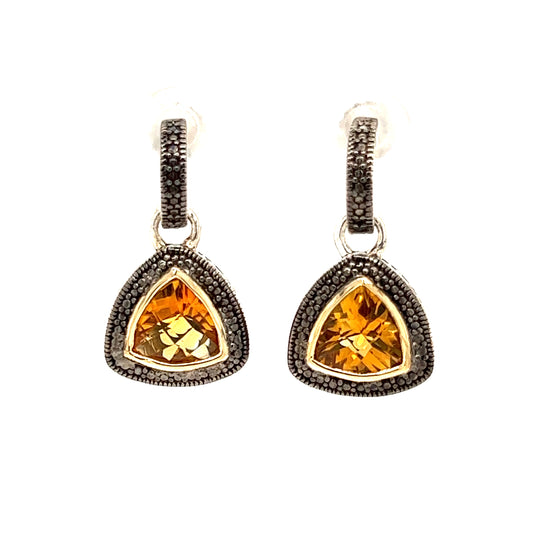 Trillion Citrine Dangle Earrings with 14K Yellow Gold Accent in Sterling Silver