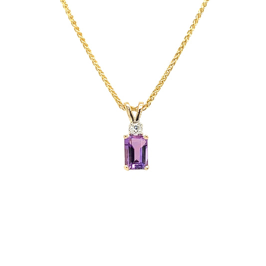 Baguette Amethyst Pendant with Diamond Accent in 14K Yellow Gold