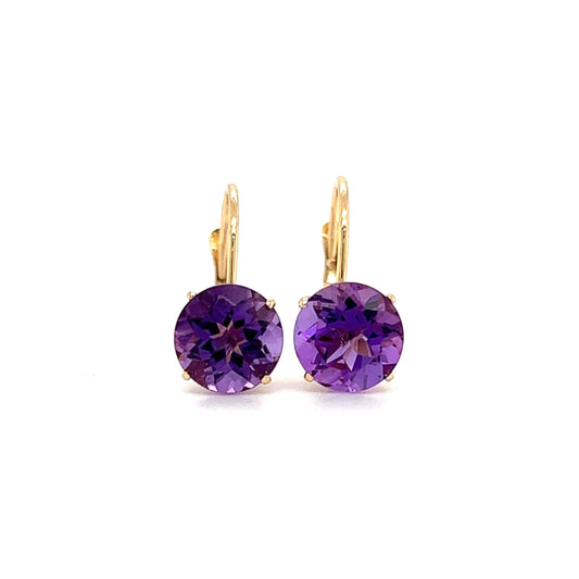 Leverback Amethyst Earrings in 14K Yellow Gold