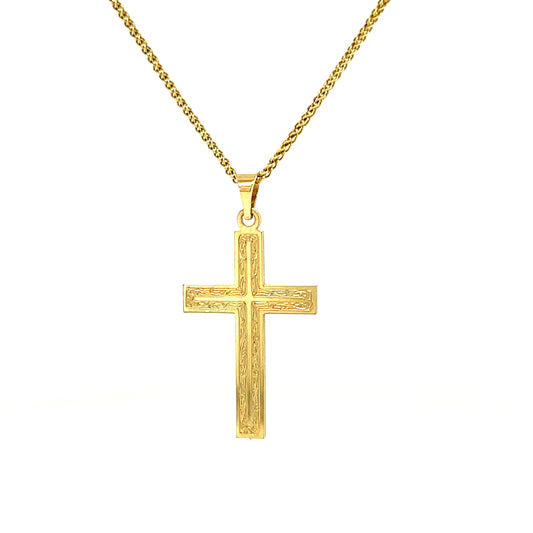 Small Etched Cross Pendant in 14K Yellow Gold