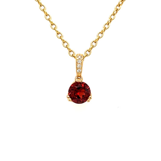 Round Garnet Pendant with Four Diamonds in 14K Yellow Gold