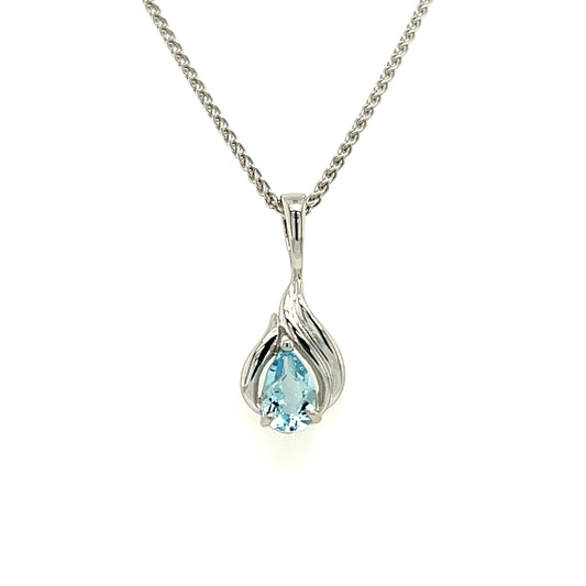 Pear Aquamarine Pendant with Flame Motif in 14K White Gold