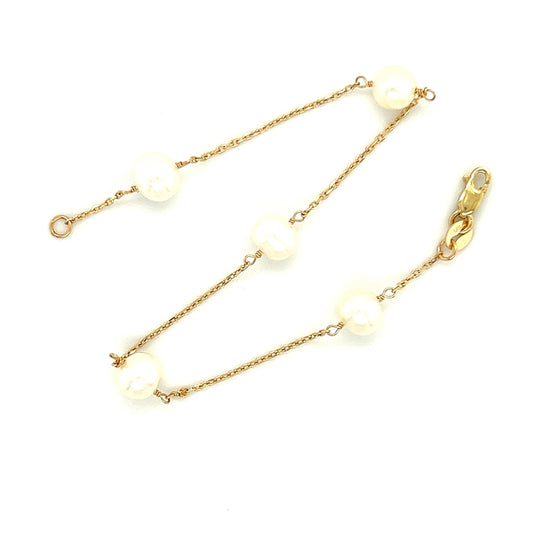 Freshwater Pearl Station Bracelet with Five Pearls in 14K Yellow Gold