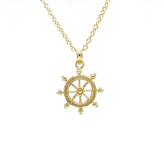 Ship Wheel Pendant with 2D Details in 14K Yellow Gold