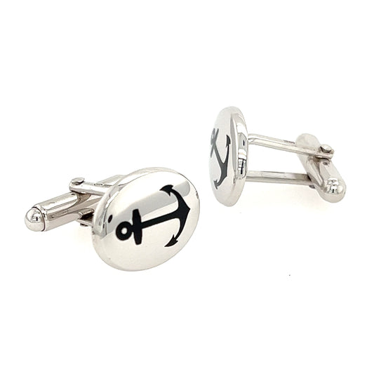 Anchor Cufflinks with Black Enamel in Sterling Silver