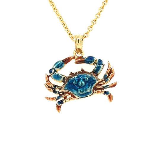Blue Crab Small Pendant with Enameling in 14K Yellow Gold