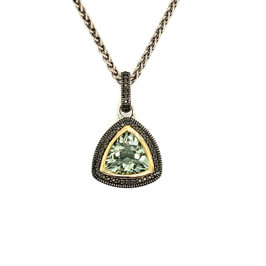Trillion Green Quartz Antiqued Necklace with 14K Yellow Gold Accent in Sterling Silver