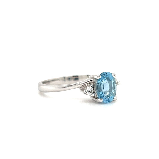 Aquamarine Bypass Ring with Two Side Diamonds in 14K White Gold