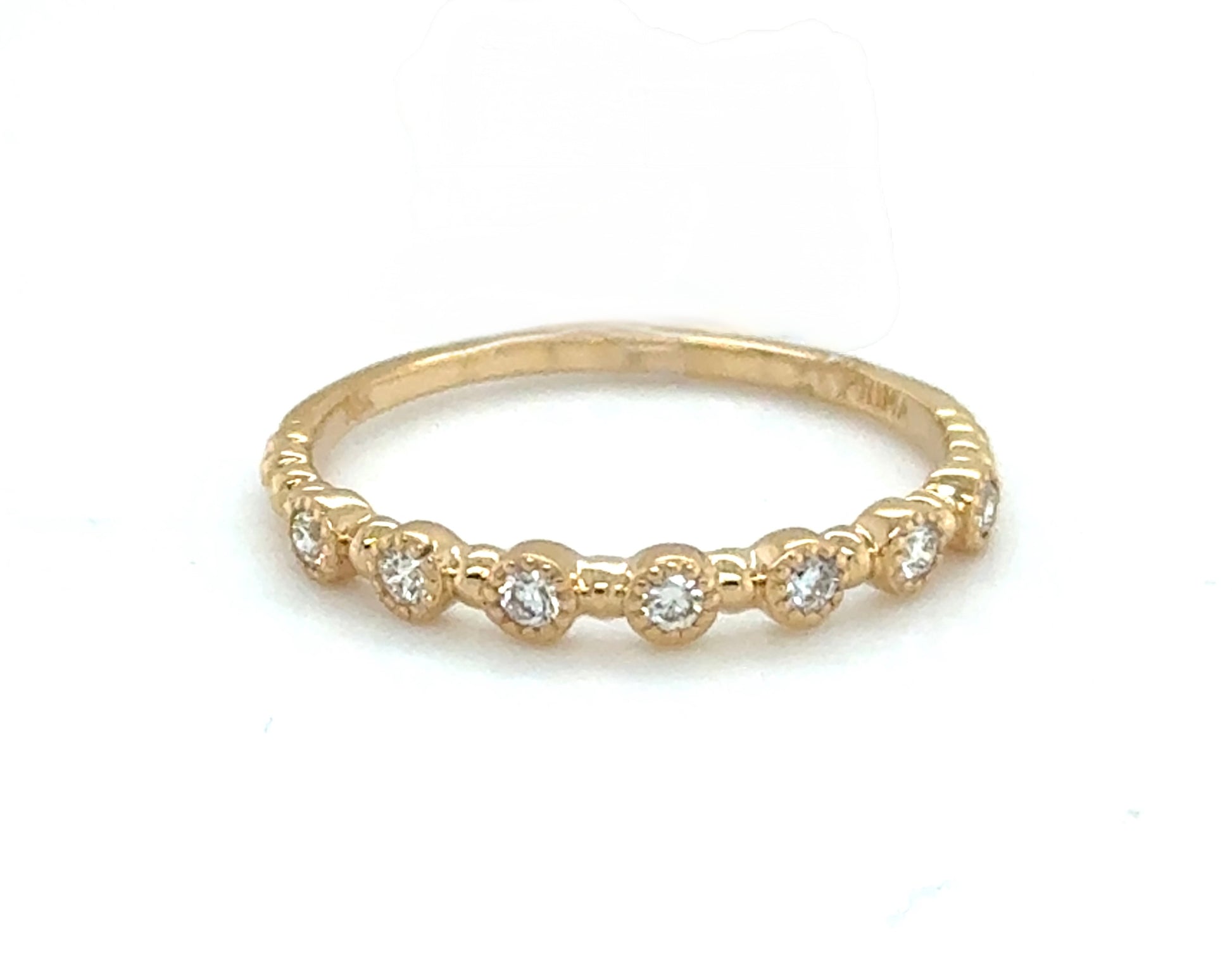 Elevate your style with this exquisite sapphire bezel set band. Crafted in luminous 14K white gold, this ring features a delicate row of vibrant blue sapphires, designed for enduring elegance and versatile styling.