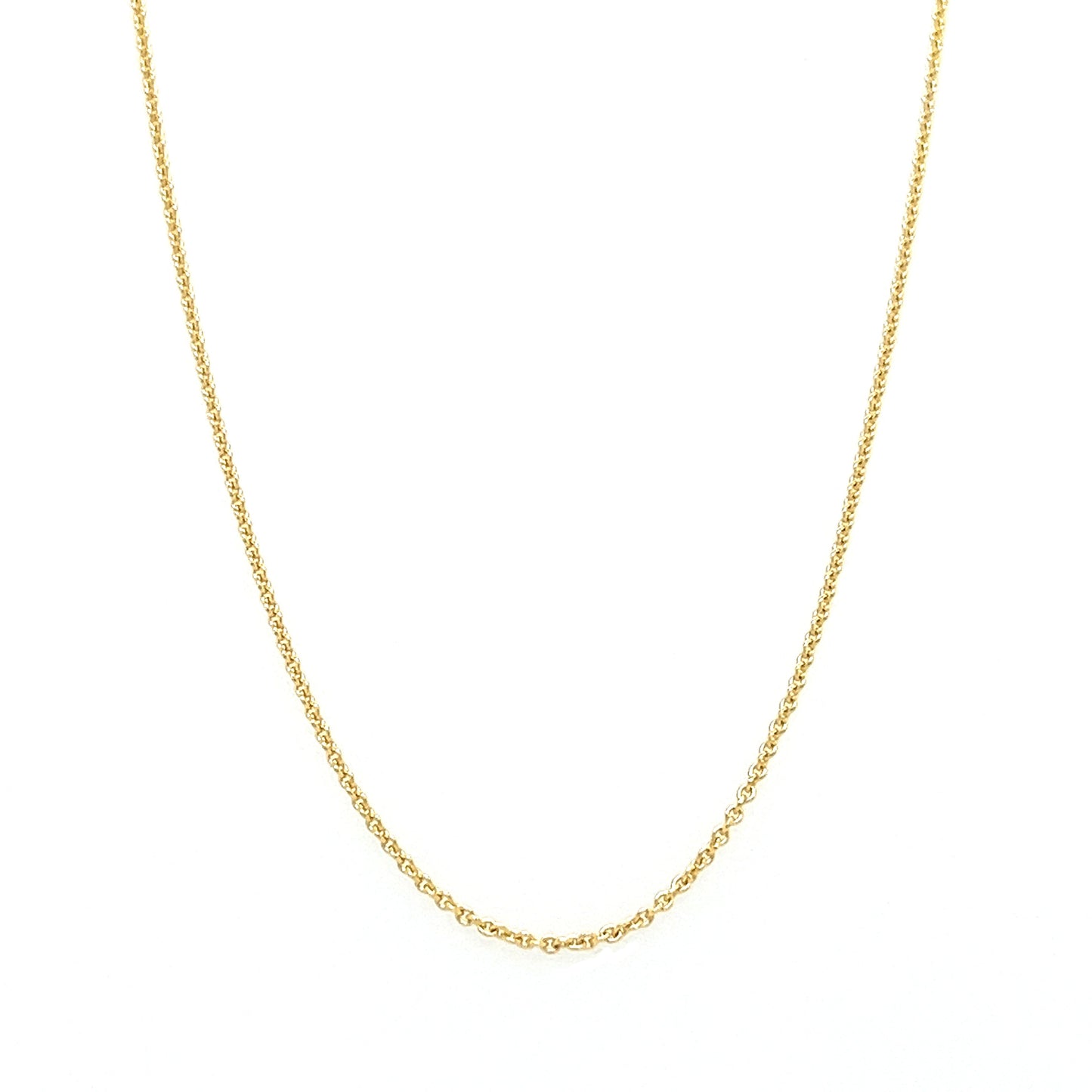 This timeless 14K yellow gold cable chain is 1.05mm wide, making it the perfect complement to any small to medium charm. This chain will add elegance to your neckline at any occasion.