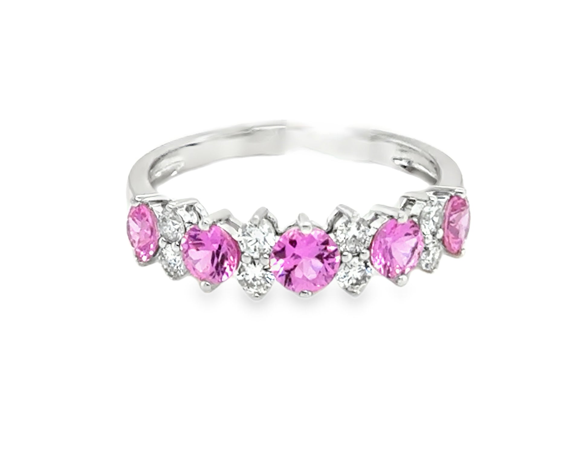 Discover elegant sparkle with this exquisite pink sapphire and diamond ring. Crafted in luminous 14K white gold, this piece features a brilliant array of vibrant pink sapphires and dazzling accent diamonds, perfect for adding a feminine and sophisticated touch to any collection.