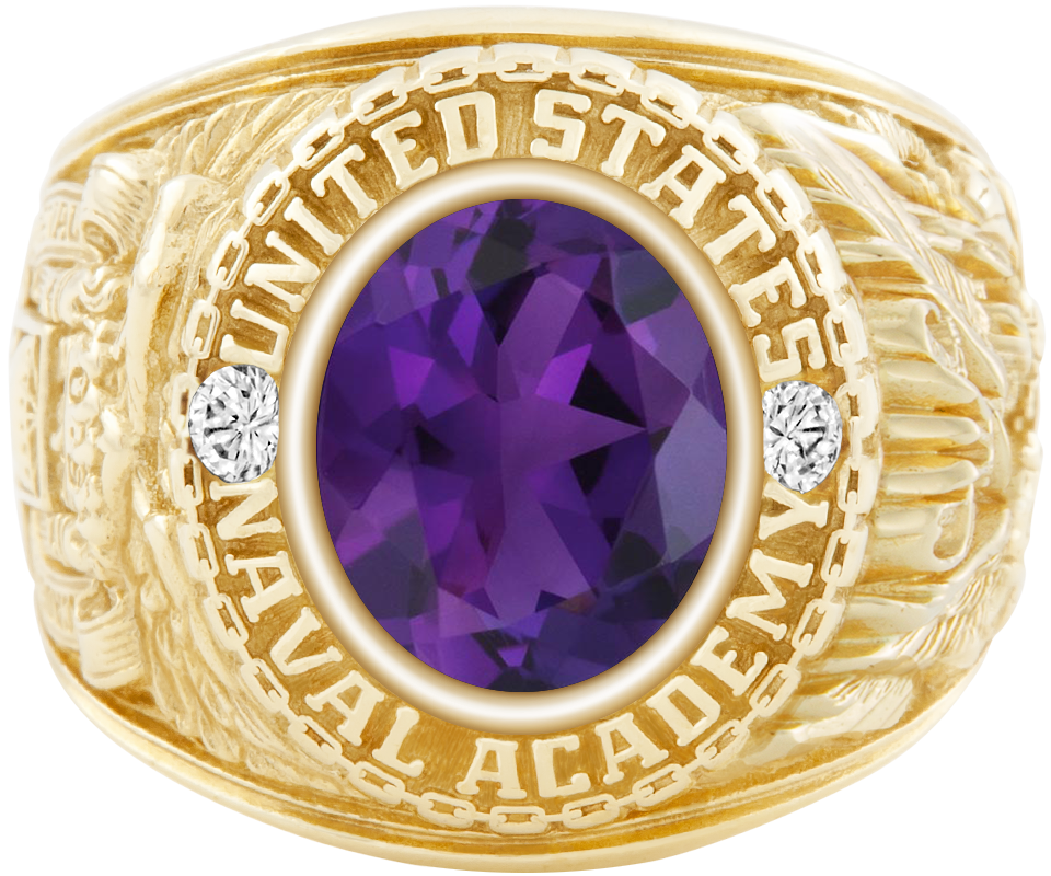 Our high quality amethyst class ring centerpieces and large diamond dividers come with an exclusively low price available only to USNA Midshipmen and Alumni.