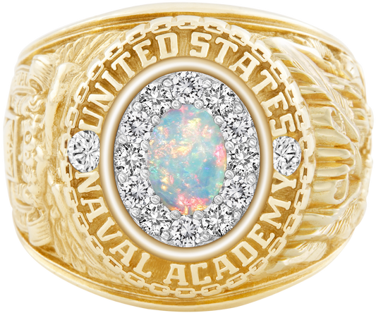 Our high quality anchors aweigh™ class ring centerpieces and large diamond dividers come with an exclusively low price available only to USNA Midshipmen and Alumni.