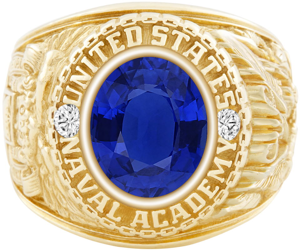 Our high quality blue sapphire class ring centerpieces and large diamond dividers come with an exclusively low price available only to USNA Midshipmen and Alumni.
