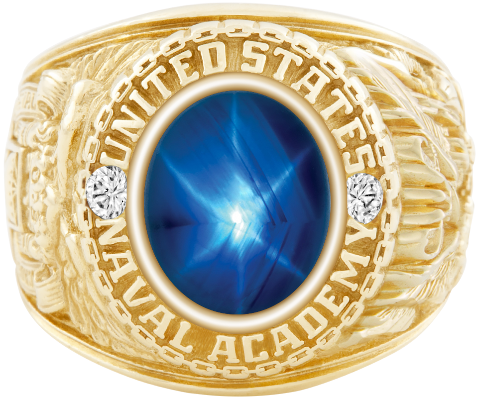 Our high quality blue star sapphire class ring centerpieces and large diamond dividers come with an exclusively low price available only to USNA Midshipmen and Alumni.